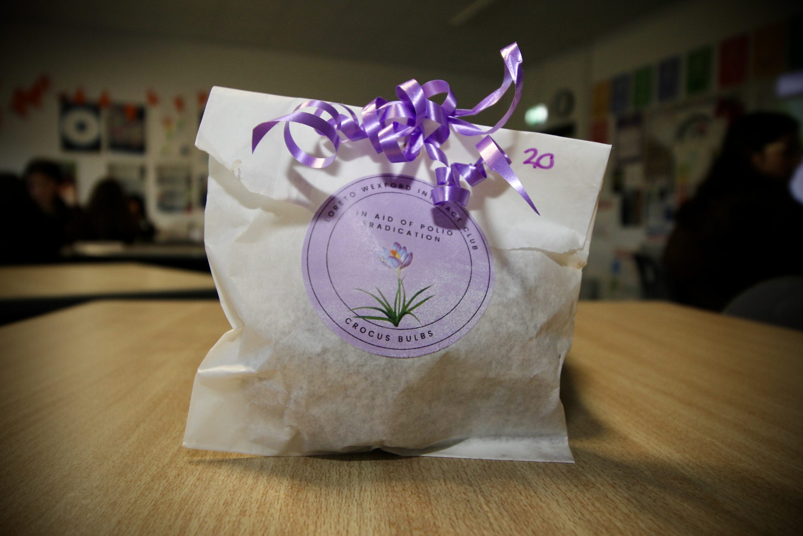 Rotary Great Britain and Ireland use purple crocus flowers as an internationally recognised symbol of polio eradication. The Loreto Interact Club are selling crocus bulbs to raise money to help aid the fight of ending polio. They are selling two different types of bags, ten bulbs for €5 or 20 bulbs for €10. They will be selling these bags at different businesses around Wexford; for example Haven Pharmacy in Clonard, AIB bank, Dec’s Pets Ardcavan, Wexford Service Station and more. The crocus bulbs will also be available to purchase at the Wexford Schools’ Christmas Market, which is hosted by Loreto on Saturday, December 9th from 11am to 2pm. All the money raised will go to the Rotary Club’s fund dedicated to ending Polio.