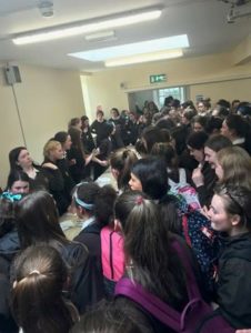 Our foyer was colourfully decorated with facts and figures all about Autism. The information included statistics, examples of famous persons with Autism and a powerful piece written by one of our own students, who herself has Autism. There was also a Nail Bar in the foyer with our wonderful SNAs on hand, volunteering to paint blue nail varnish for 50 cent. Intercom announcements were made by the Students’ Council, explaining the celebratory day and reminding each student to always be inclusive.