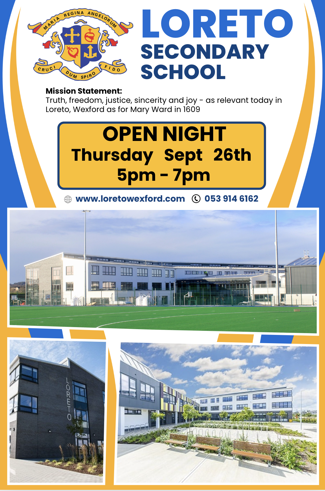 - Our Open Night for 5th and 6th class pupils will take place on Thursday, 26 September. Please share the date with friends and family!