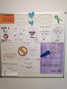 In January, we worked on the theme of bullying. The committee members encouraged their class groups to start sitting beside new people in their classes in order to advocate students being more open and inclusive. We also did a poster campaign to highlight the issue.