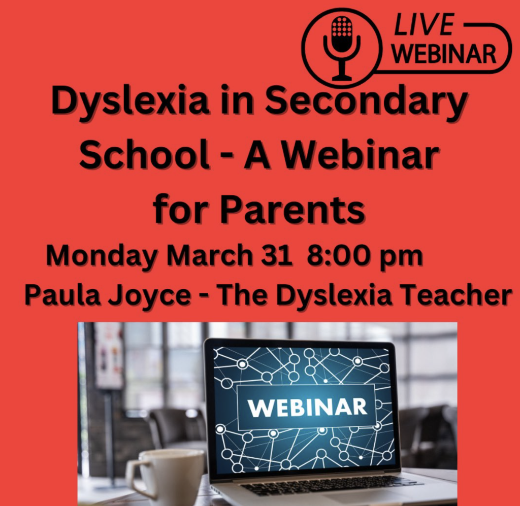 Zoom webinar with Paula, a secondary SEN teacher with a Postgrad Dip in Dyslexia.