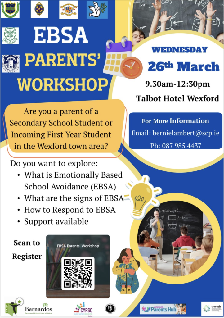 Please see the attached poster for information on an upcoming parents’ workshop on emotionally based school avoidance.