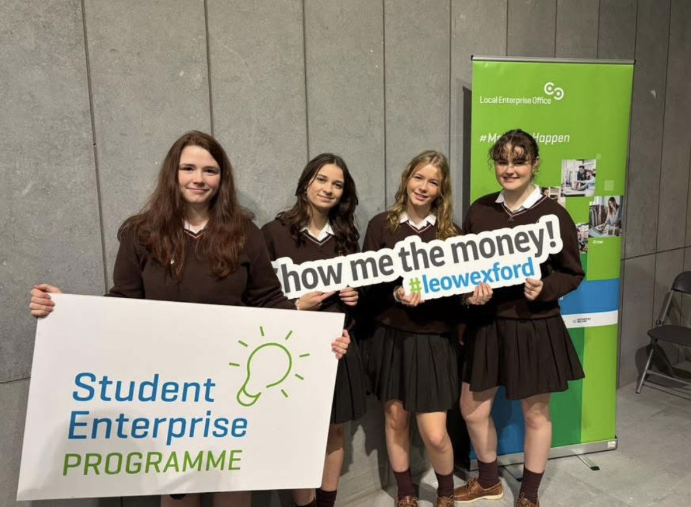 Congratulations also to our four Transition Year mini company groups who interviewed at County Hall recently. Ceird Coille, who created wooden crafts with Irish seanfhocail were also successful on the night winning a Merit Award for their entrepreneurship.