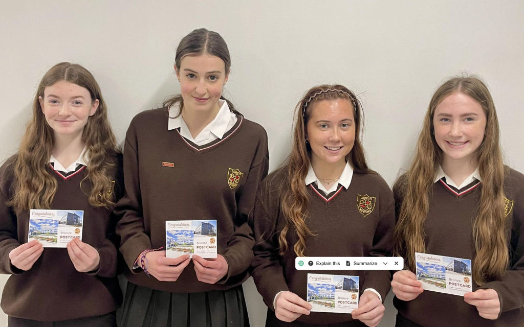 Congratulations to Julia Barrett, Abbie Kelly, Maria Gilbane, and Caoimhe Nolan in Third Year on achieving their Bronze Card in recognition of earning ten or more positive marks.