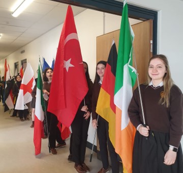 We opened with a flag procession of 15 flags representing some of the cultures in our school. Úna Walsh of ‘Late Late Show’ fame accompanied the procession on the harp. Mr. Mc Ginnity gave the opening address where he focused on how Loreto has fulfilled the three School of Sanctuary pillars of ‘Learn, Action, Share’ by being true to our own mission statement; ‘truth, freedom, justice, sincerity and joy – as relevant today in Loreto, Wexford as for Mary Ward in 1609’.