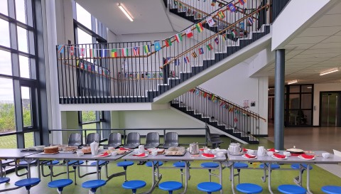 A tour of the school completed the day. Monitors were invited to our welcome board in the GPA created by Ms. Johns and her wonderful team of volunteers. Posters from Multicultural Week were also viewed along with our Schools of Sanctuary board which displays photos from multicultural celebrations since 2018 and the stories of some of our students who came to us as refugees. The tour concluded in the library where monitors were shown our collection of books from diverse cultures and languages and our ‘Cultures of Loreto Wexford’ board where students have pinned their home country. Finally, the group took their seats for Sophia Unychenko’s presentation of her photographs taken in Ukraine and Wexford and to listen to Haya & Hanin Al Kasem’s account of their journey from war torn Syria to Ireland.