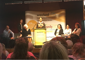 Later on more speakers were introduced such as Ciarin De Buis, CEO of Women for Election, Nora Furlong, a youth worker and Brian Kehoe, head of Wexford Local Development. This part of the event was a panel discussion involving the audience. It was very informative and gave great insight to women’s position particularly in politics in Wexford. For instance, in Wexford we only have 4 women councillors out of 34. Ciarin De Brun remarked that it takes a remarkable women to be elected in government, whereas a man can be unremarkable and be elected, we need to get to a position where an unremarkable woman can be elected into government. It concluded with musical performances from Micheal D’Arcy and Rachel Grace.