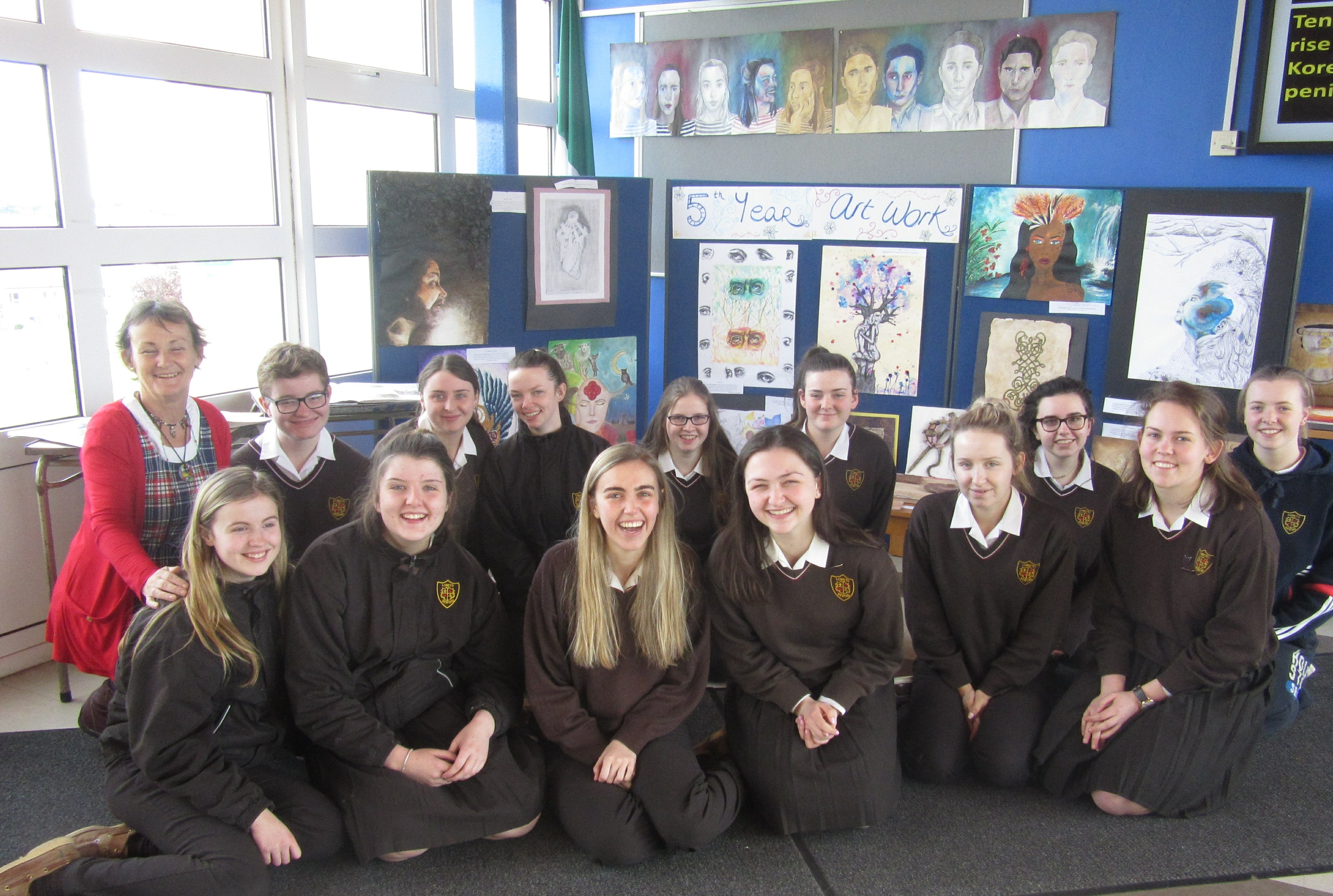 Also on display are some paintings and designs in conjunction with our study of Ancient Irish Art. For example, The Tara Brooch and The Ardagh Chalice can be seen in both 2D and 3D formats. From cavemen to faces of the earth, I think we can all agree that the artwork on show is extremely interesting to observe and admire. We really enjoyed expressing our individuality and creativity during this project – something that is vital for Leaving Cert Art.