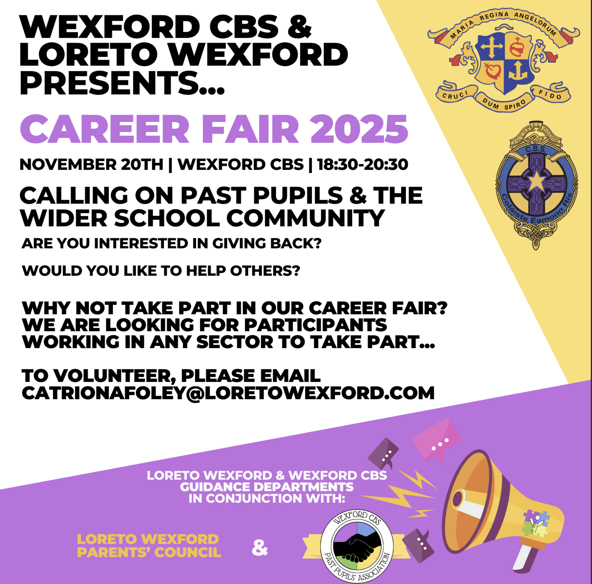 We invite past pupils, parents, and the wider school community to volunteer at our Career Fair 2025. See details below.