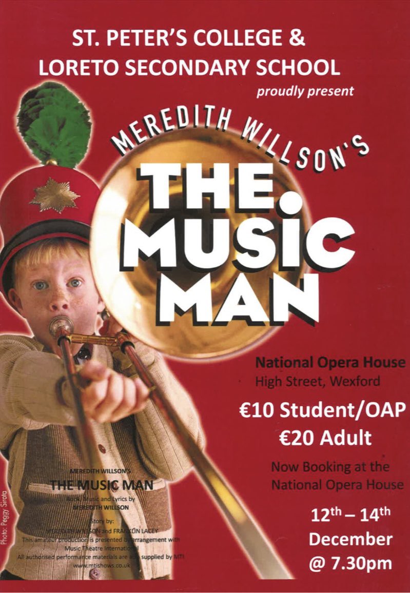 Musical week is finally upon us! The cast and crew of The Music Man will proudly begin their three-night run in The National Opera House this Tuesday, 12 December at 19.30. Tickets can be bought here: St Peter’s College and Loreto Secondary School – Present The Music Man – What’s On – National Opera House