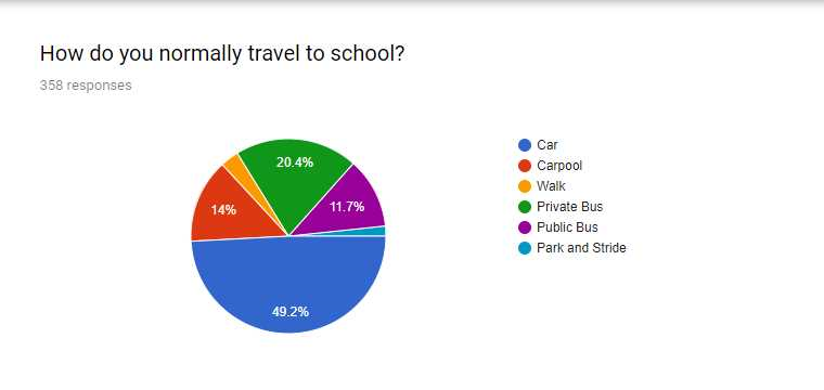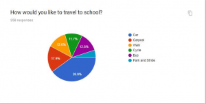 A survey was recently completed by the committee, in which we asked students how they normally travel to school, how they would like to travel to school if they had the opportunity and how they feel about their role reducing harmful carbon emissions.
